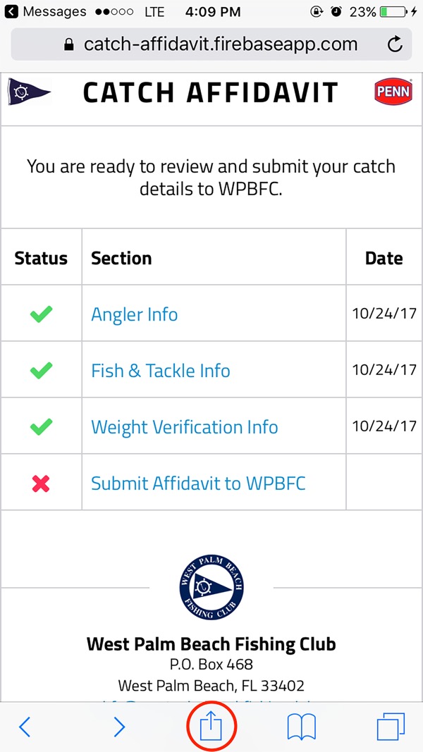 Submitting your catch has never been easier. Members can enter their catches via smart phone using the WPBFC’s electronic fillable affidavit. Simply “Add to Home Screen” and the created shortcut works just like an app. Enter fish at your convenience, even while you’re out on the water! Of course, hard copies of the affidavit can be submitted as well.