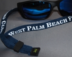 Blue Sunglasses Strap with West Palm Beach Fishing Club in white lettering (sunglasses not included).